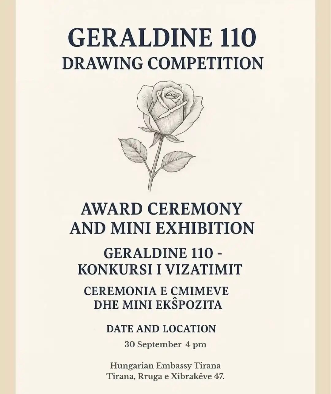Ambasada Hungareze në Tiranë dhe Fondacioni Mbretëresha Geraldinë do t’i dhurojnë një vepër arti Maternitetit “Mbretëresha Geraldinë”. Piktura, e krijuar nga artistja hungareze e artit abstrakt Anna Konya që jeton në Shqipëri, nderon trashëgiminë e mirësisë dhe forcës së Mbretëreshës. Arti në spitale sjell ngushëllim dhe dritë, dhe kjo vepër vjen si një kujtesë e dashurisë dhe mbështetjes në momentet e lindjes dhe fillimeve të reja. Gjithashtu, në 110-vjetorin e lindjes së Mbretëreshës Geraldinë, fëmijët u ftuan të nderojnë kujtimin e saj përmes një konkursi vizatimi. Frymëzuar nga eleganca, mirësia dhe