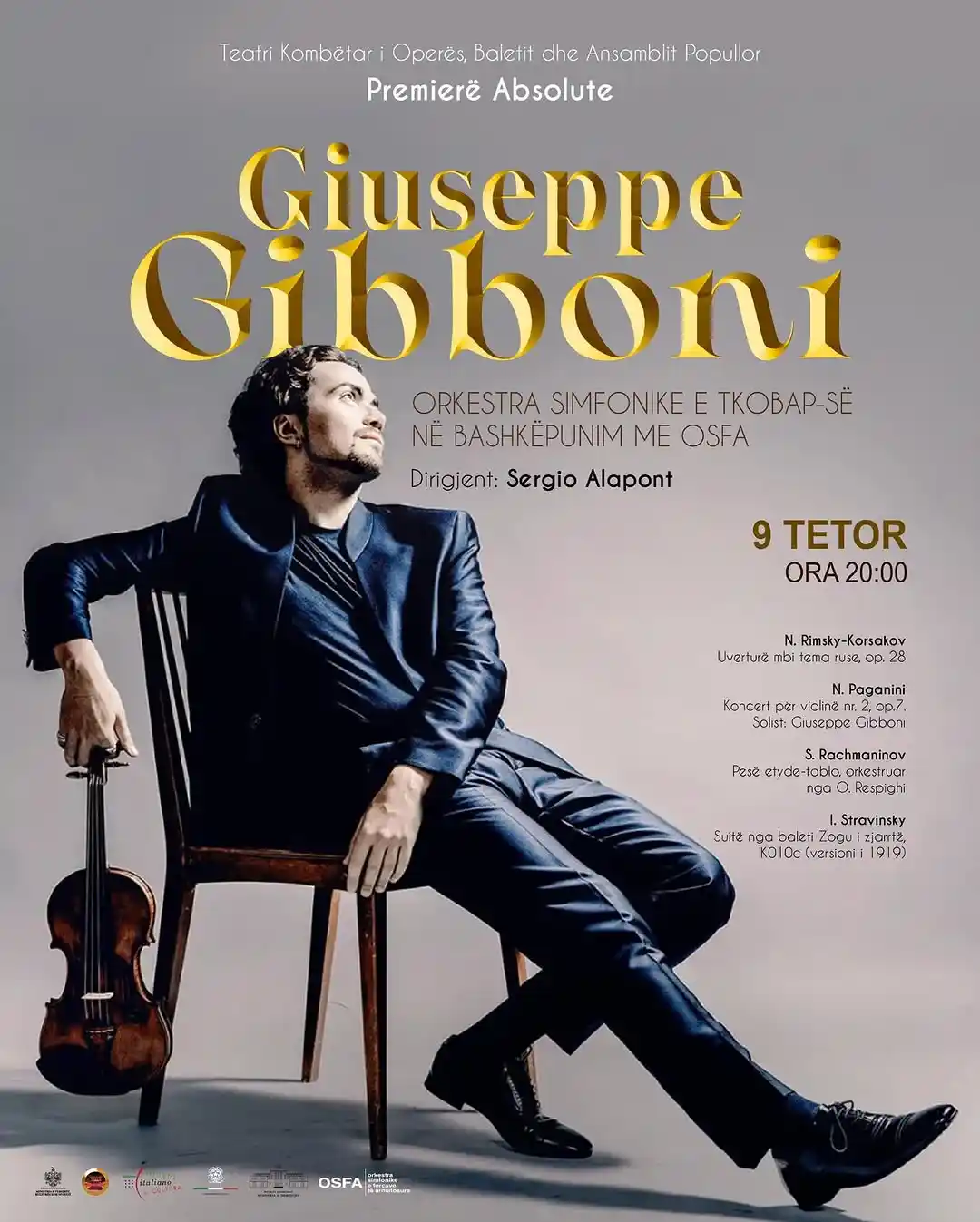 Giuseppe Gibboni, një nga violinistët më të spikatur të panoramës ndërkombëtare muzikore, fitues i çmimit Paganini, vjen në skenën e TKOBAP-së më 9 tetor ora 20:00.