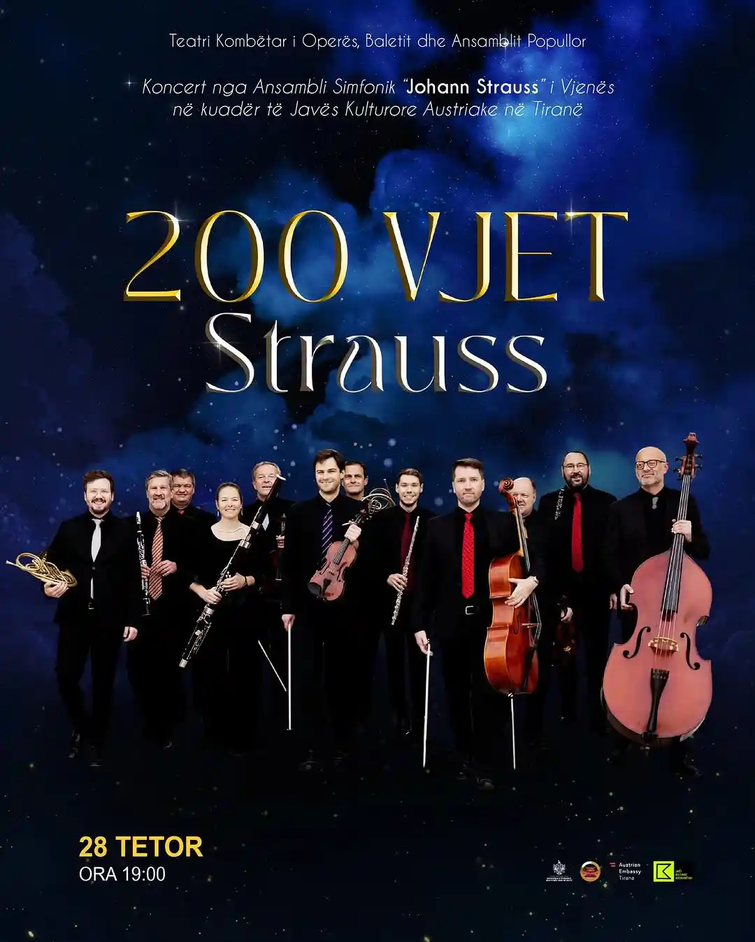 Në skenën e Teatrit Kombëtar të Operës, Baletit dhe Ansamblit Popullor, Ansambli Simfonik “Johann Strauss” i Vjenës sjell koncertin “200 vite Strauss ”, në kuadër të 200-vjetorit të lindjes së kompozitorit të mirënjohur dhe çeljes së Javës Kulturore Austriake në Tiranë.