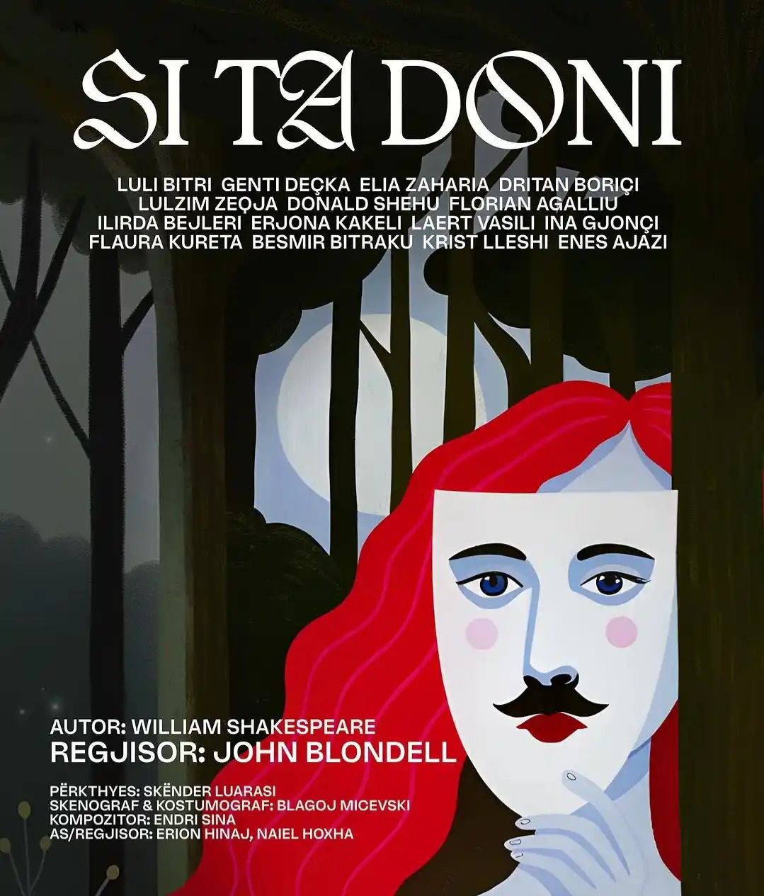 Teatër Teatri “Si ta doni” nga William Shakespeare Sindi Shkira 27/10/2025 Facebook Twitter Email WhatsApp Kur dashuria bëhet lojë, kush fiton, zemra apo arsyeja ? “SI TA DONI” William Shakespeare.Regjia: John Blondell Data 30/10/2025 Ora 20:00 Location Teatri Kombëtar Stay in touch Çdo gjë që ndodh në Tiranë, në emailin tuaj. Jo tani Teatër Teatri Kombetar i Operas, Baletit dhe Ansamblit Popullor Anja Dervishi Teatër Teatri i Kukullave Silvia Tabaku Teatër Teatri i Metropolit Silvia Tabaku Teatër ArTurbina Silvia Tabaku Vende tërheqëse →