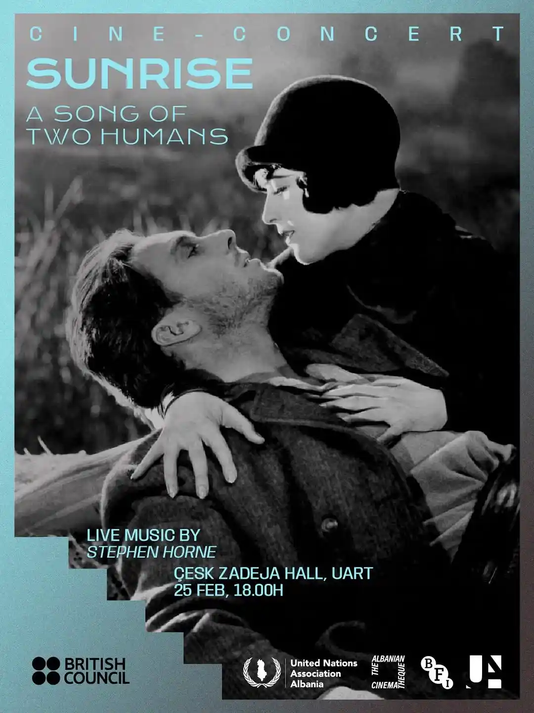 Ky mund të jetë eventi kinematografik i vitit në Tiranë. Ejani të shihni “SUNRISE”, filmin pa zë më të mrekullueshëm të realizuar ndonjëherë, shoqëruar me muzikë live nga mjeshtri i shoqërimit muzikor, Stephen Horne.