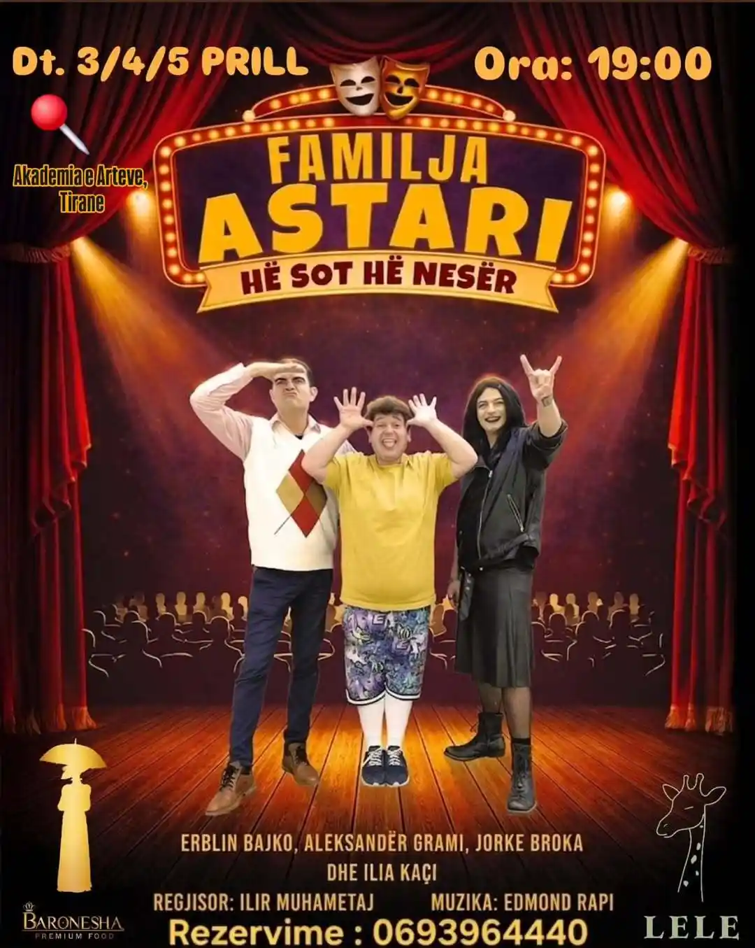 Teatër Teatri “Familja Astari – Hë sot hë nesër” Sindi Shkira 01/04/2026 Facebook Twitter Email WhatsApp DATAT E REJA PER “FAMILJEN ASTARI” SAPO DOLEN NE SHITJE, NXITONI TE REZERVONI (0693964440)JU MIREPRESIM 😁😁 Stay in touch Çdo gjë që ndodh në Tiranë, në emailin tuaj. Jo tani Teatër Teatri Kombetar i Operas, Baletit dhe Ansamblit Popullor Anja Dervishi Teatër Teatri i Metropolit Silvia Tabaku Teatër ArTurbina Silvia Tabaku Teatër Teatri i Kukullave Silvia Tabaku Vende tërheqëse →