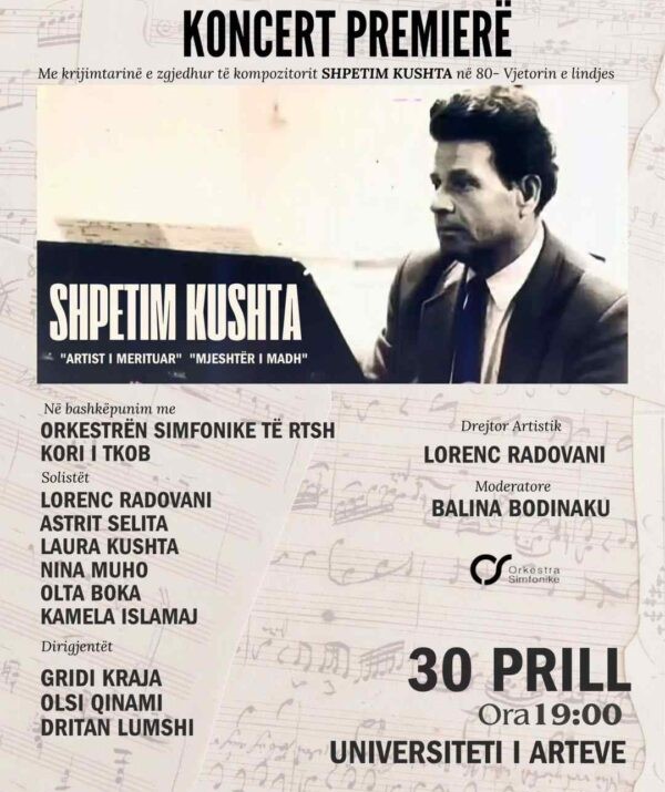 Orkestra Simfonike e RTSH ju fton në një mbrëmje të veçantë muzikore, kushtuar krijimtarisë së zgjedhur të kompozitorit Shpëtim Kushta, në kuadër të 80-vjetorit të lindjes së tij.